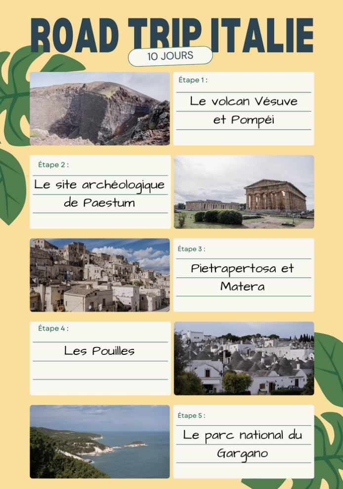 Pour résumer, le sud de l'Italie ne fera clairement pas partie de notre top 10 des destinations préférées pour plusieurs raisons. Il est évident que l'agression que nous avons vécue a forcément altéré un peu l'image que je m'en faisais. Mais en toute objectivité, j'ai été un peu déçu. Les réseaux sociaux vantent souvent tel ou tel endroit, mais parfois la réalité déçoit. Ce que nous avons particulièrement apprécié : les cœurs des villages historiques des Pouilles, le volcan Vésuve et le site archéologique de Paestum. Ce serait intéressant que vous me disiez en commentaire ce que vous pensez des Pouilles !
